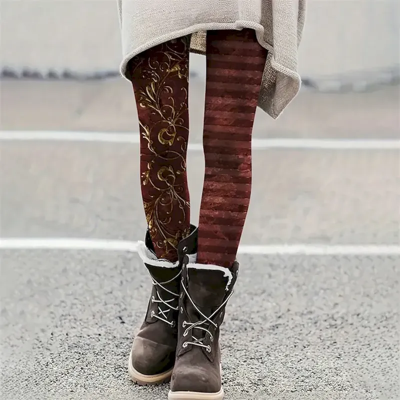 Women’s Pants Trousers Leggings Cozy Leggings Streetwear Casual Full Length High Waist Floral Striped Elastic Waist Print Breathability Comfortable Stretchy Vacation Street Daily Wear Dark Red Summer