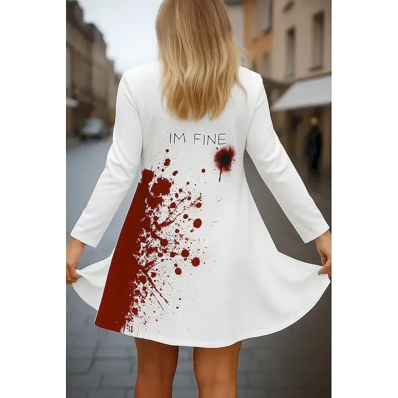 Halloween Women’s Cloak / Capes Quick Dry Lightweight Knit Active Exaggerated 3D Bloody Casual Long Collarless Regular Fit Long Sleeve Outerwear White Red Fall