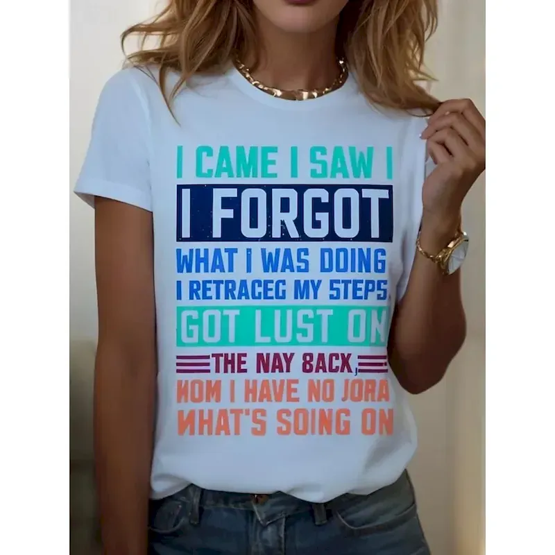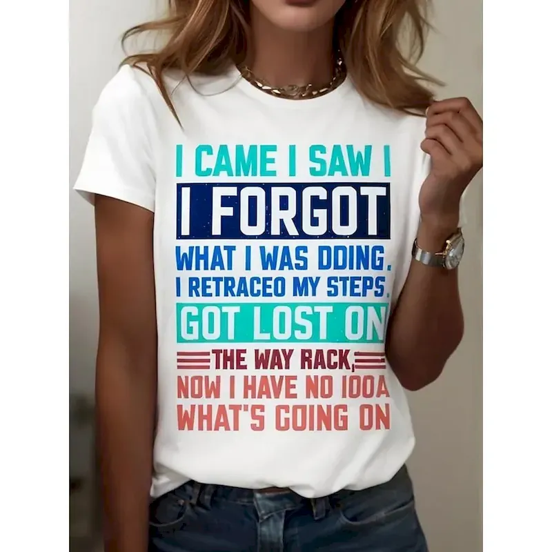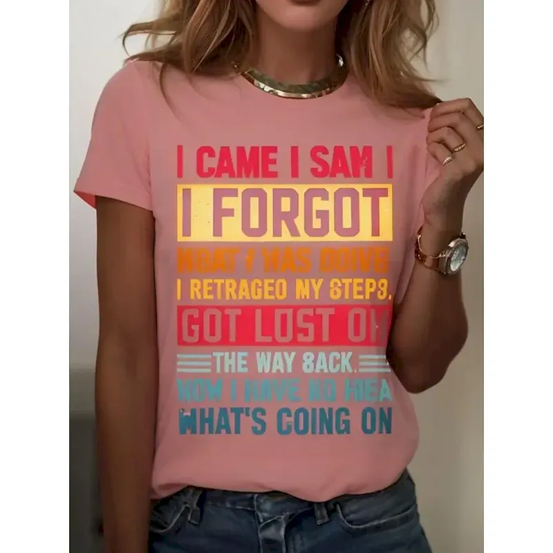 I Came I Saw I Forgot What I Was Doing Sarcastic Women’s T Shirt Graphic Letter Vintage Stylish Classic Short Sleeve Crew Neck Round Neck Regular Tops Daily Weekend