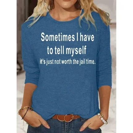 Women’s T shirt Long Sleeve Letter Behavior Fashion Long Sleeve Round Neck Regular Tops Daily Weekend Print Black Blue Khaki Spring & Fall Spring, Fall, Winter, Prefall