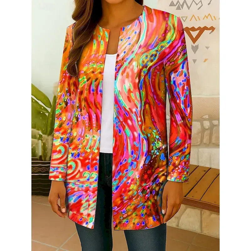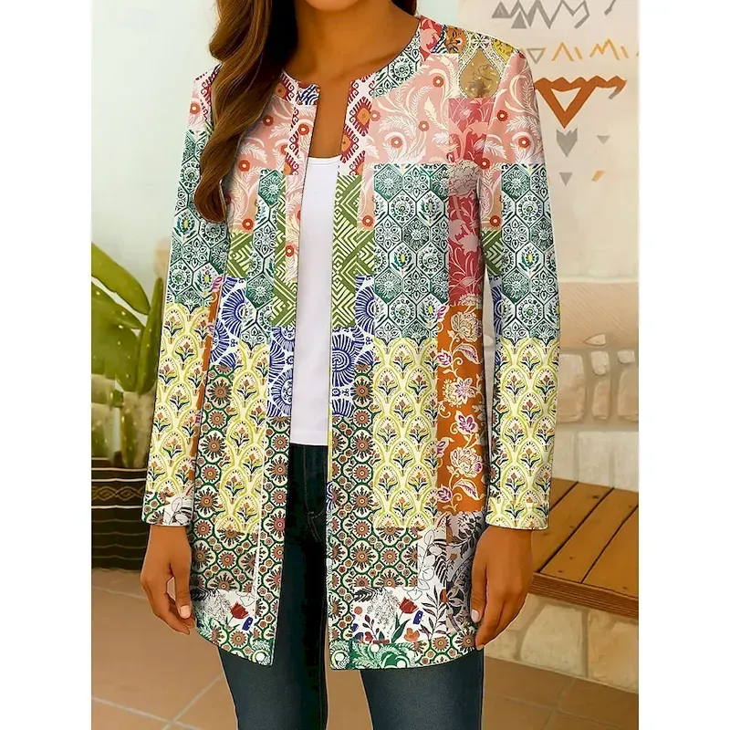Women’s Casual Jacket Comfortable Breathable Pocket Open Front Elegant Vintage Fashion Daily Geometric Vacation Daily Wear Regular Crewneck Long Sleeve With Pocket Loose Fit Long Sleeve Coat