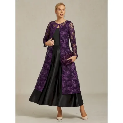 Women’s Coat Blazer Jacket Lace Embroidered Open Front Elegant Floral Formal Anniversary Party Wedding Guest Open Front Long Crewneck Regular Fit Long Sleeve Outerwear Eggplant Spring Fall
