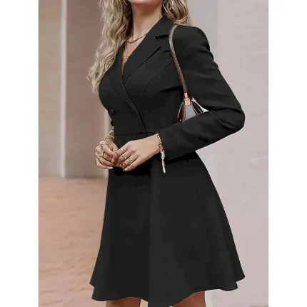 [Fabric & Fit]: Crafted from high-quality polyester with a micro-elastic finish, this dress combines comfort and a flattering fit. The fabric offers a structured yet smooth appearance, perfect for maintaining an elegant look throughout the day.