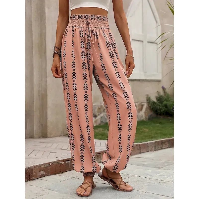 Women’s Pants Chiffon Floral Print Elasticated Waistband Casual Vacation Spring Fall