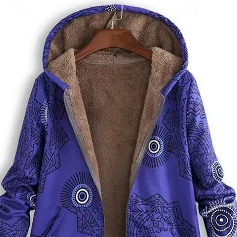 Women’s Fleece Jacket Coat Hoodie Jacket Warm Comfortable Zipper Pocket Fashion Modern Casual Geometric Going out Weekend Zipper Regular Hooded Regular Fit Long Sleeve Outerwear Blue Winter