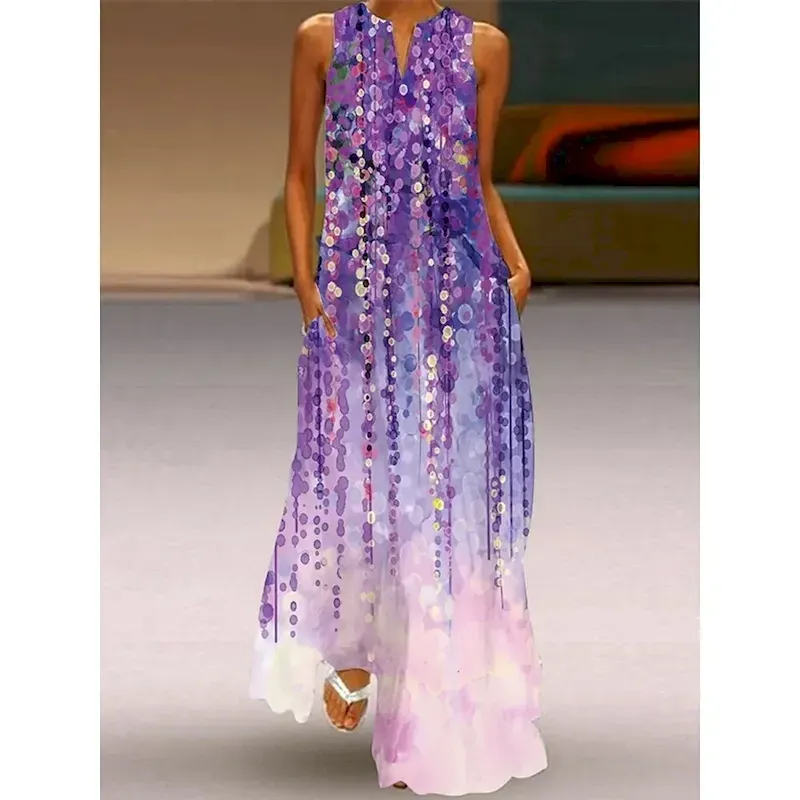Women’s Maxi Dress Sundress A Line Dress Summer Dress Vacation Casual Boho Holiday Loose Fit Ombre Floral Graphic Sleeveless V Neck Notched Neck Aqua Blue Sage Green Lilac Summer Spring
