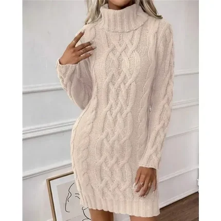 Women’s Mini Dress Sweater Dress Knit Dress Casual Dress Elegant Fashion Modern Outdoor Daily Going out Regular Fit Plain Long Sleeve Turtleneck Apricot Fall Winter