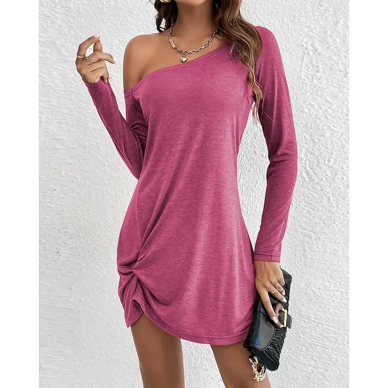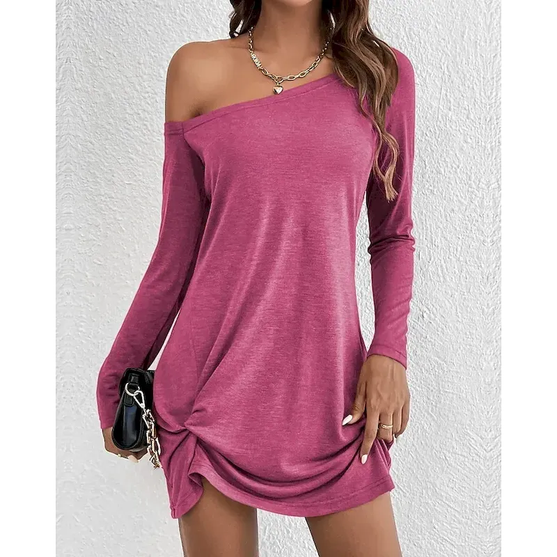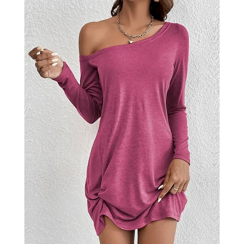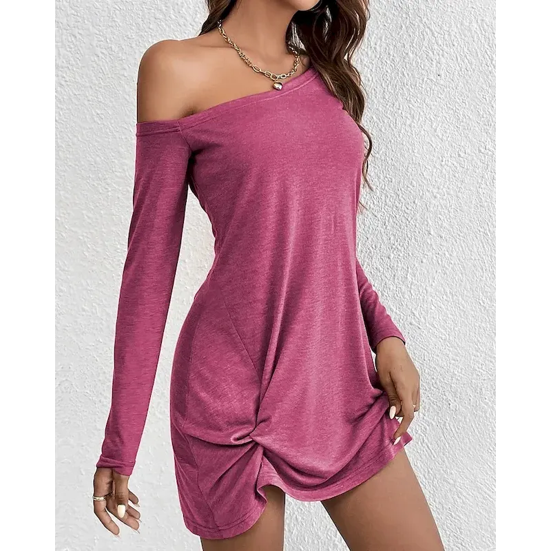 Women’s Mini Dress Casual Dress T Shirt Dress Tee Dress Modern Outdoor Daily Holiday Regular Fit Plain Long Sleeve Cold Shoulder Blue Brown Green Rose Red Spring Fall