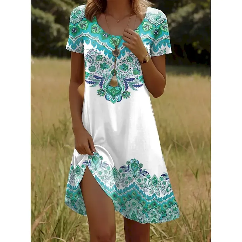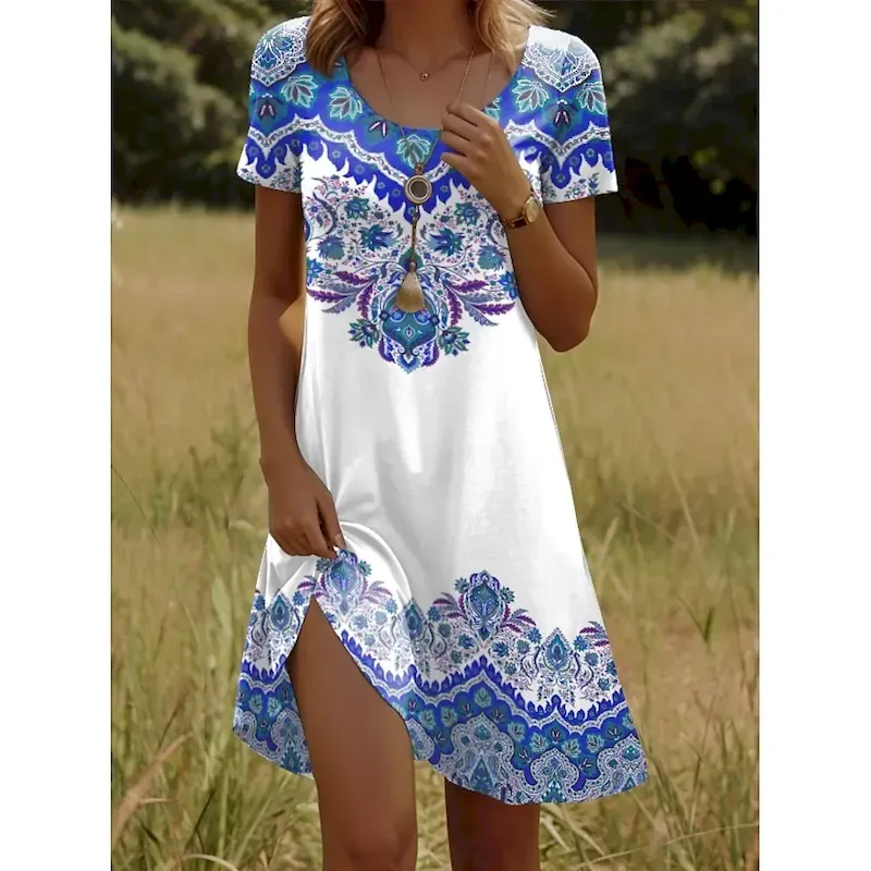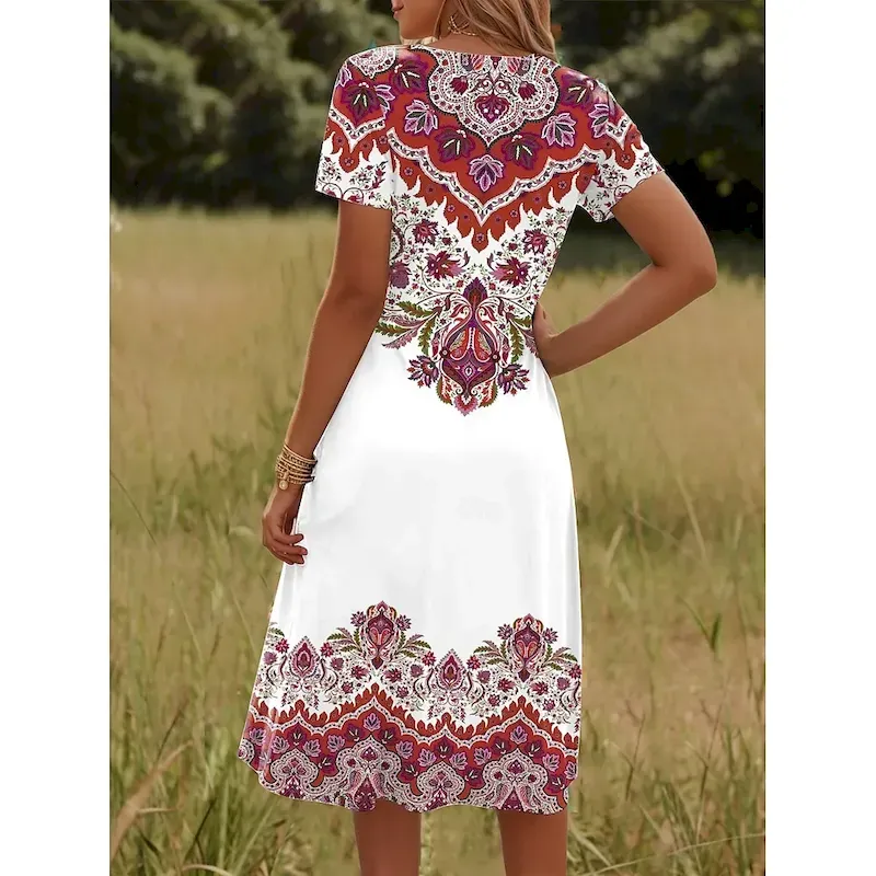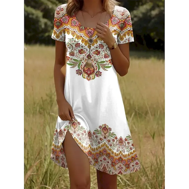 Women’s Mini Dress T Shirt Dress Tee Dress Sundress Vacation Casual Boho Going out Regular Fit Graphic Paisley Short Sleeve V Neck Yellow Red Blue Purple Summer