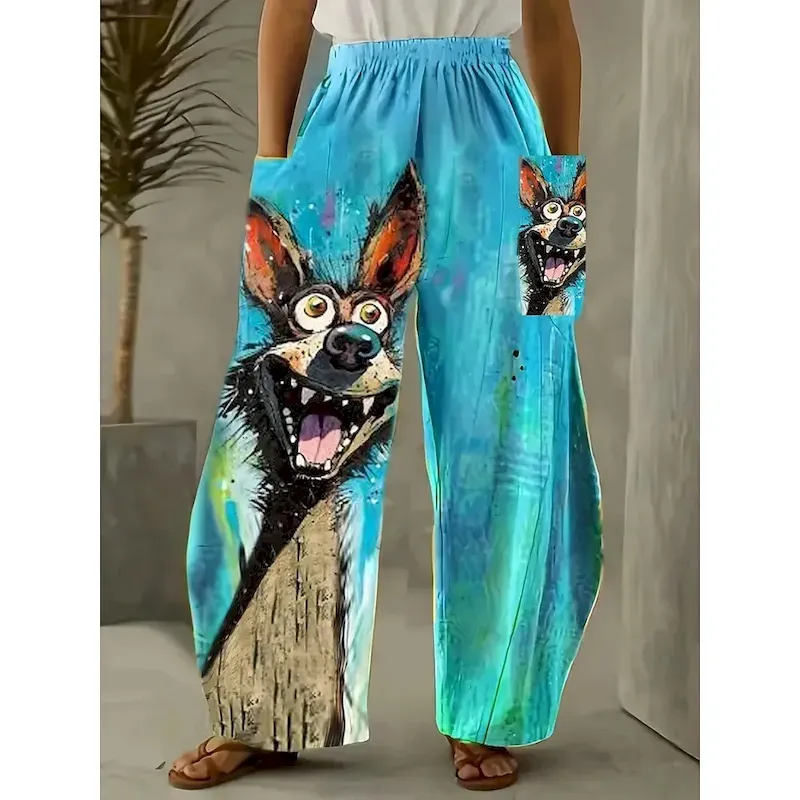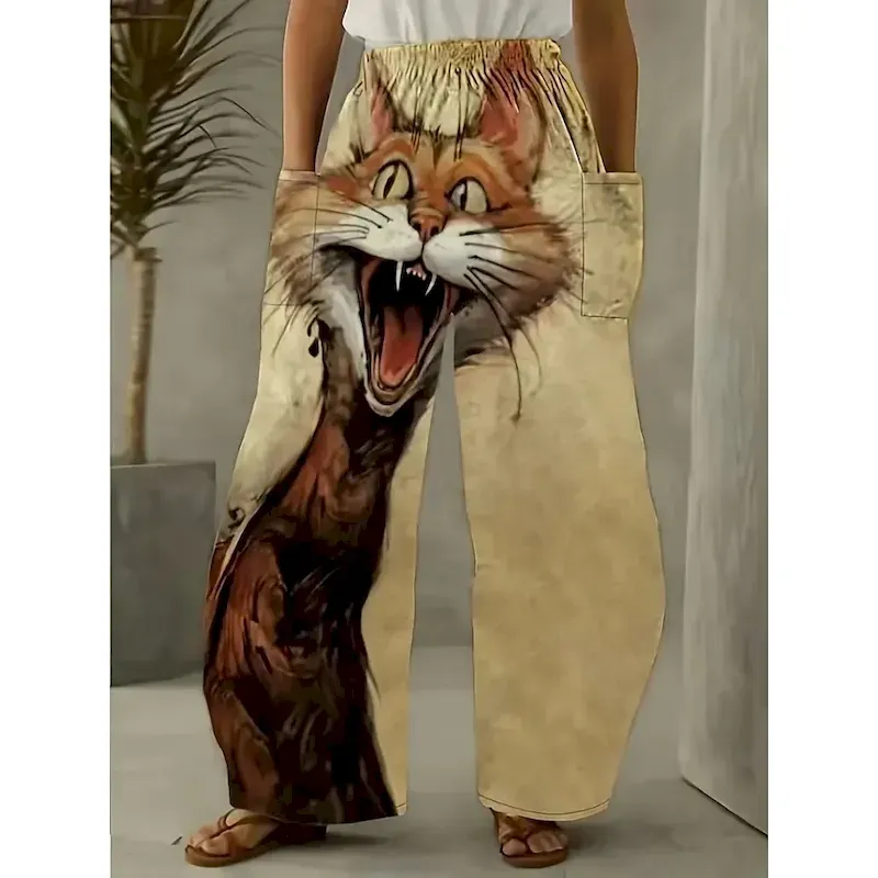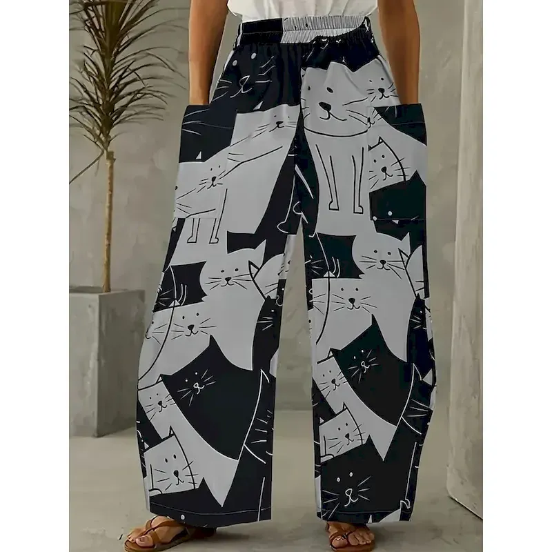 Women’s Wide Leg Chinos Pants Trousers Vacation Fashion Casual Full Length High WaistPantsHalloween Cat Pocket Elastic Waistband Printing Comfy Soft Comfortable Stretchy Outdoor Street Black Yellow