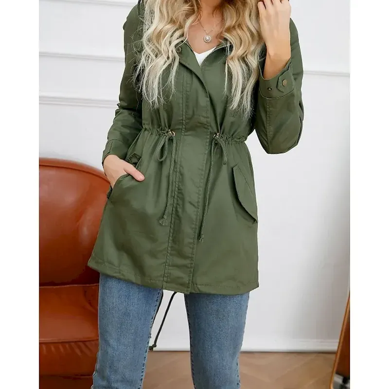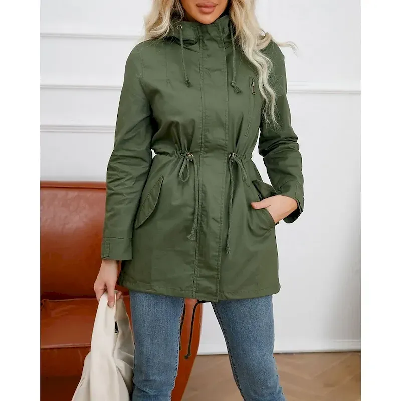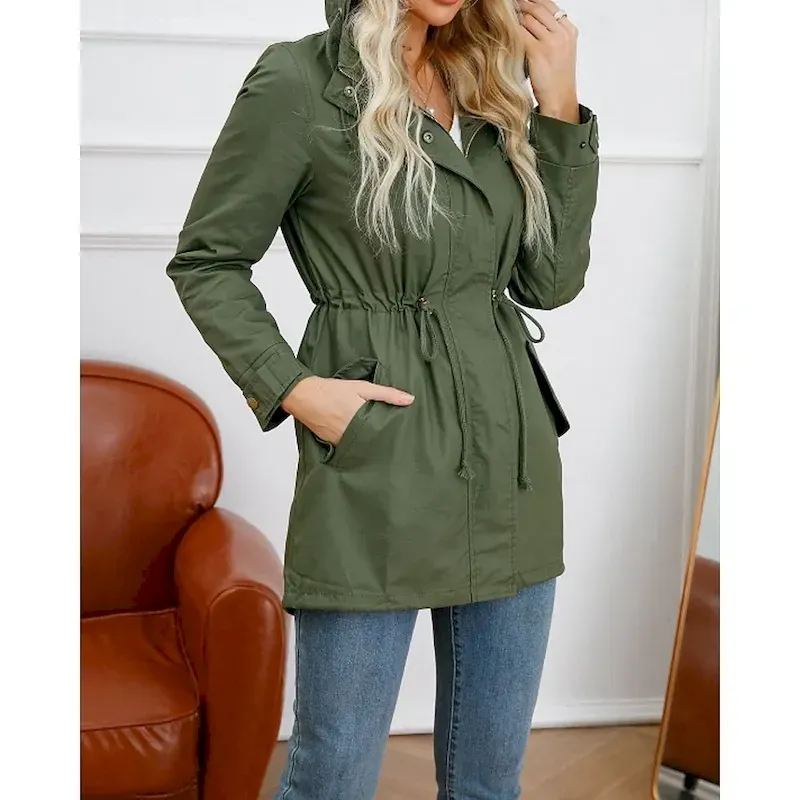 Women’s Winter Coat Trench Coat Warm Comfortable Zipper Pocket Casual Plain Vacation Daily Wear Going out Weekend Long Hooded Regular Fit Long Sleeve Outerwear Black White Wine Fall Winter